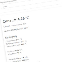 OpenWeather forecasts, nowcasts for bieszczady region.
